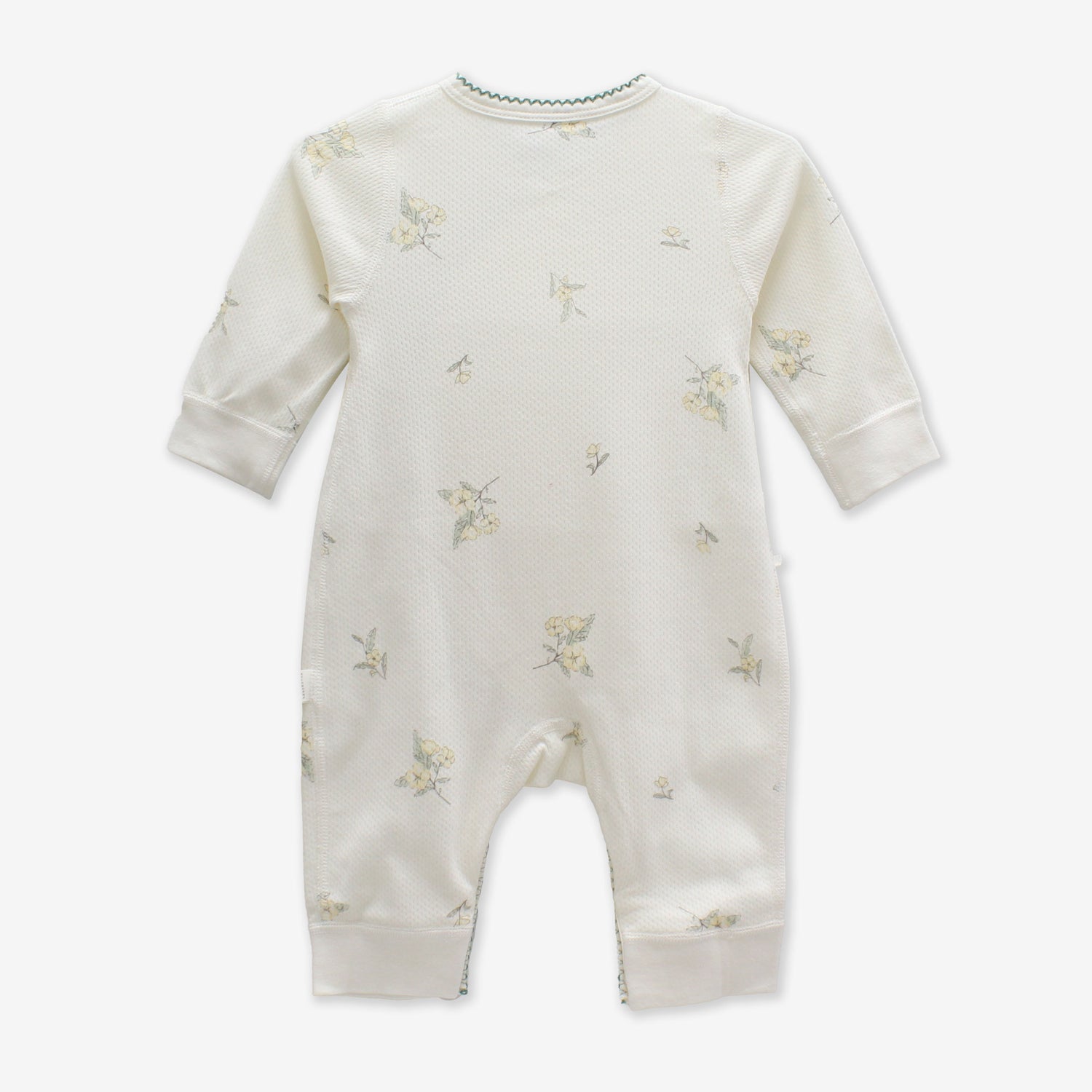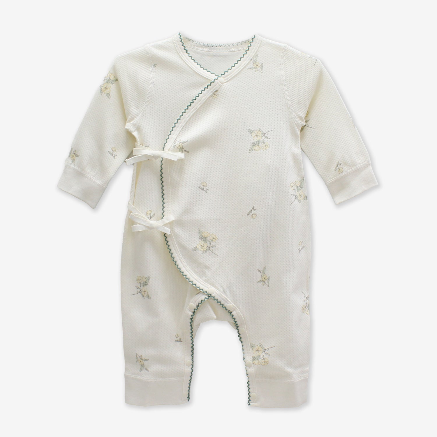 '綁帶設計可因應寶寶體型而調節,一體式連衣褲適合開始學習腿部活動的嬰兒,輕柔覆蓋嬰兒手腳肌膚,不怕腹部著涼!