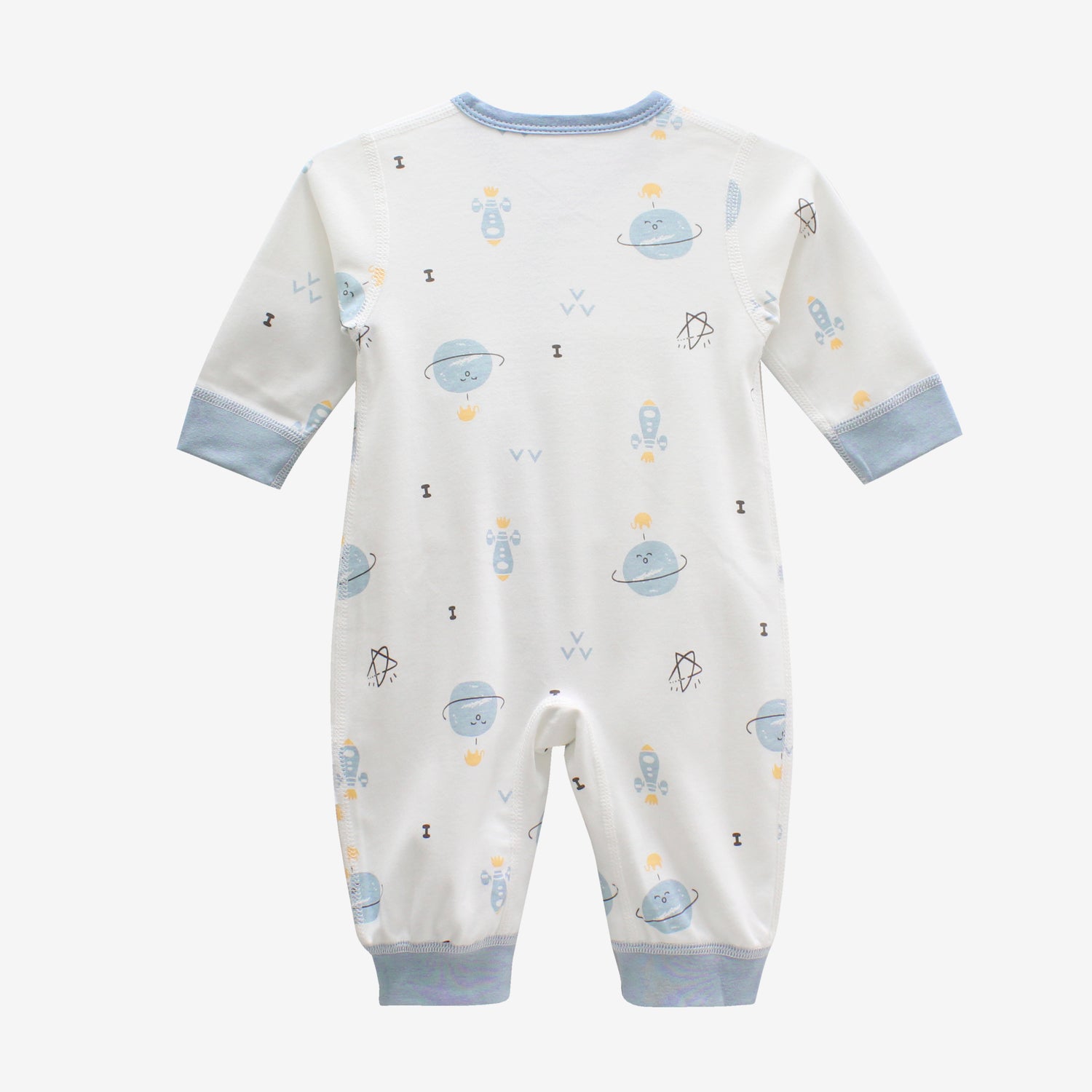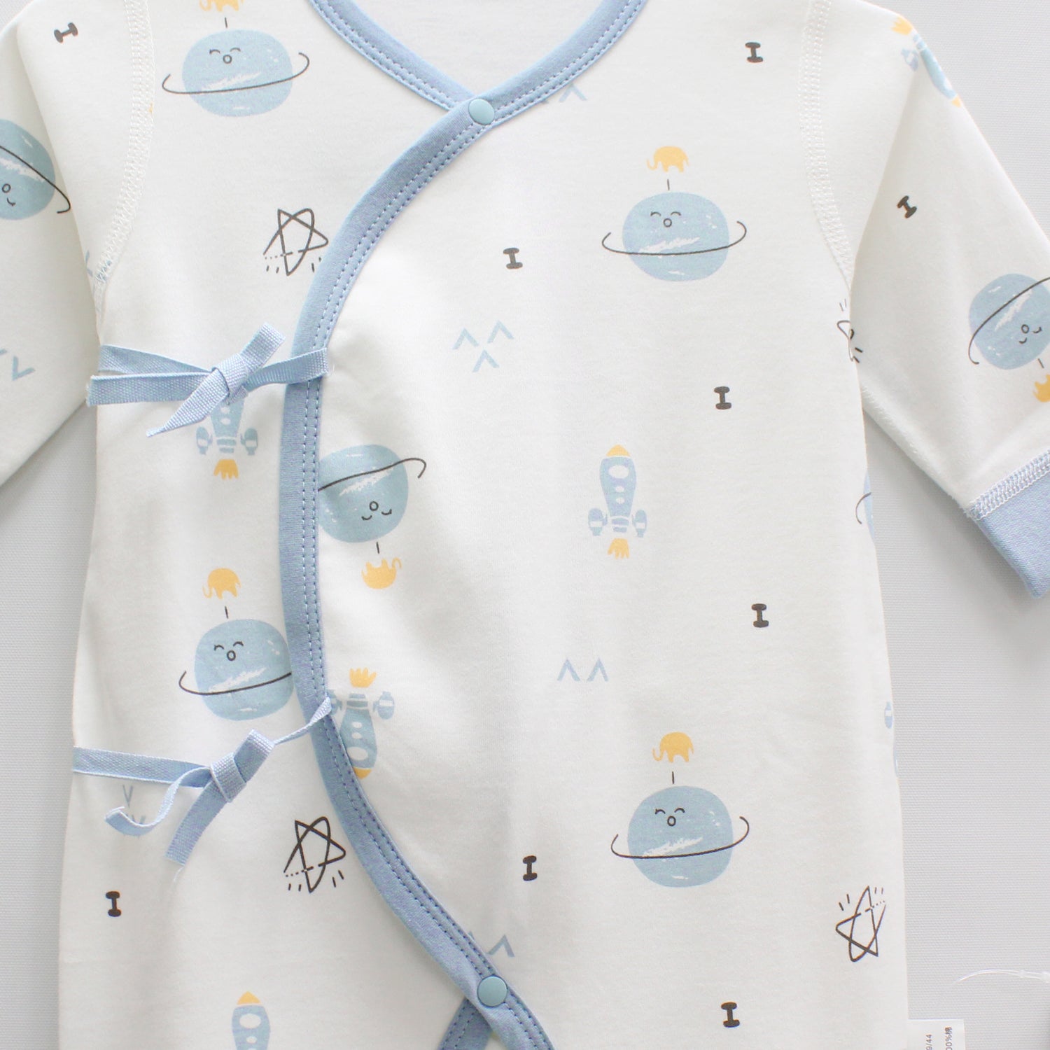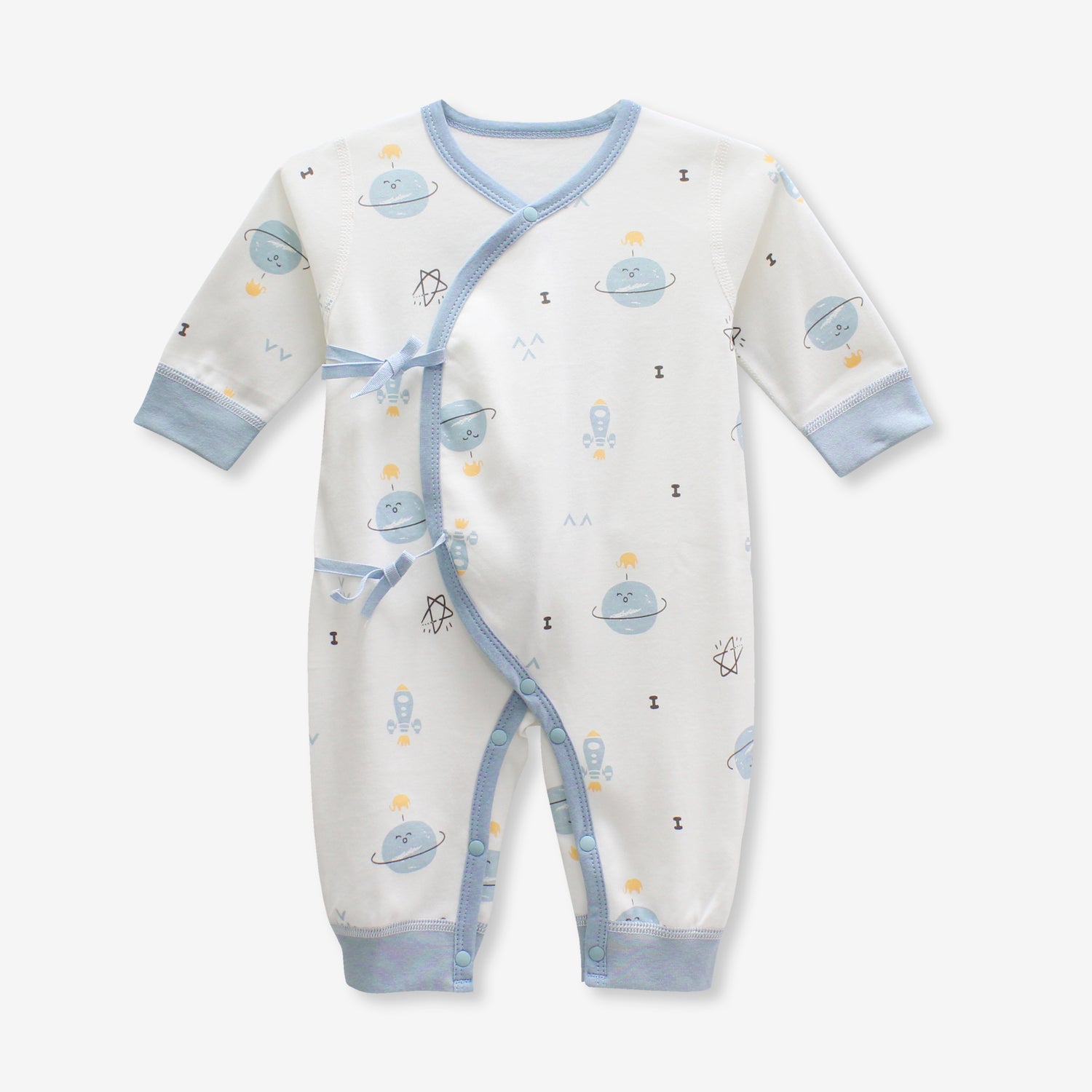 '綁帶設計可因應寶寶體型而調節,一體式連衣褲適合開始學習腿部活動的嬰兒,輕柔覆蓋嬰兒手腳肌膚,不怕腹部著涼!