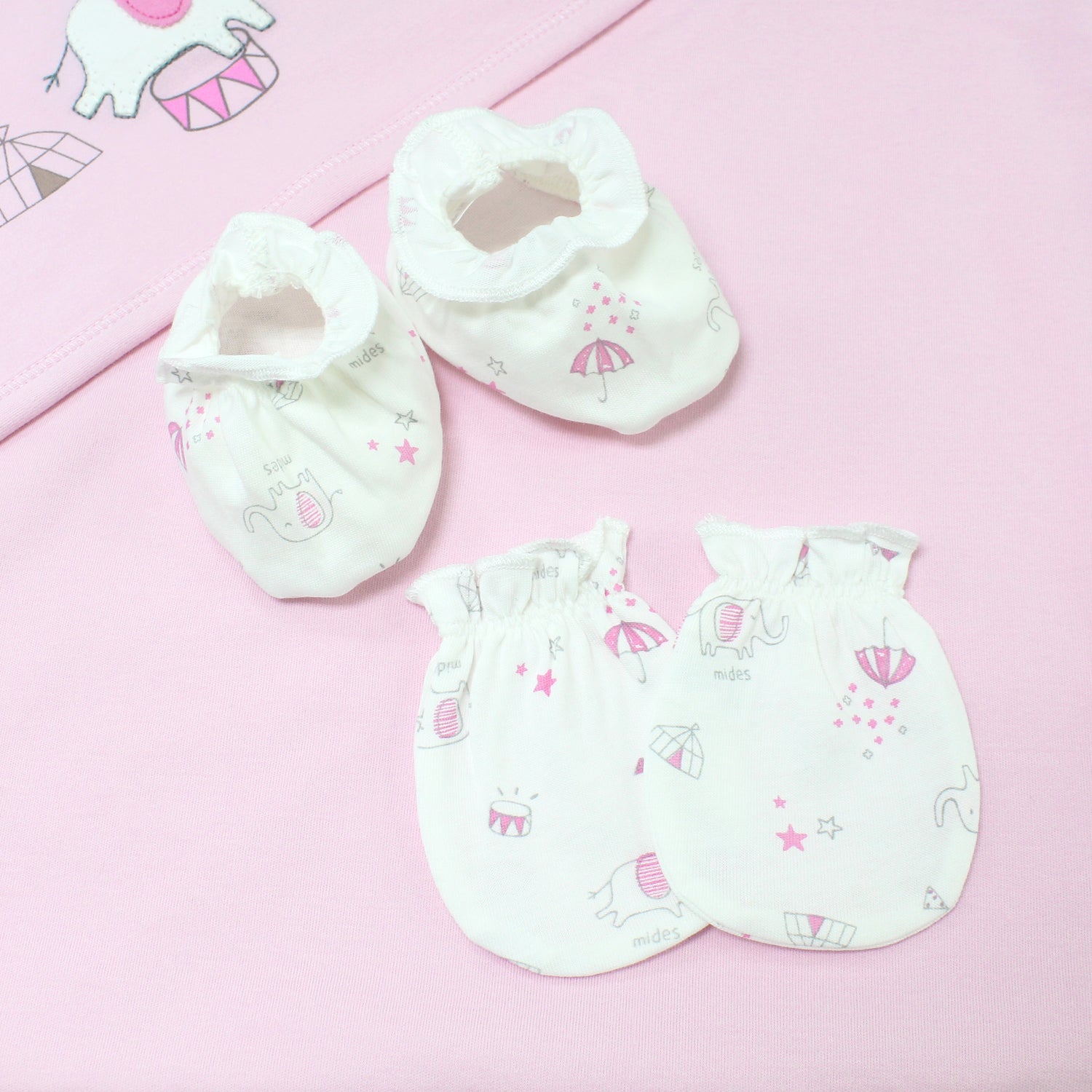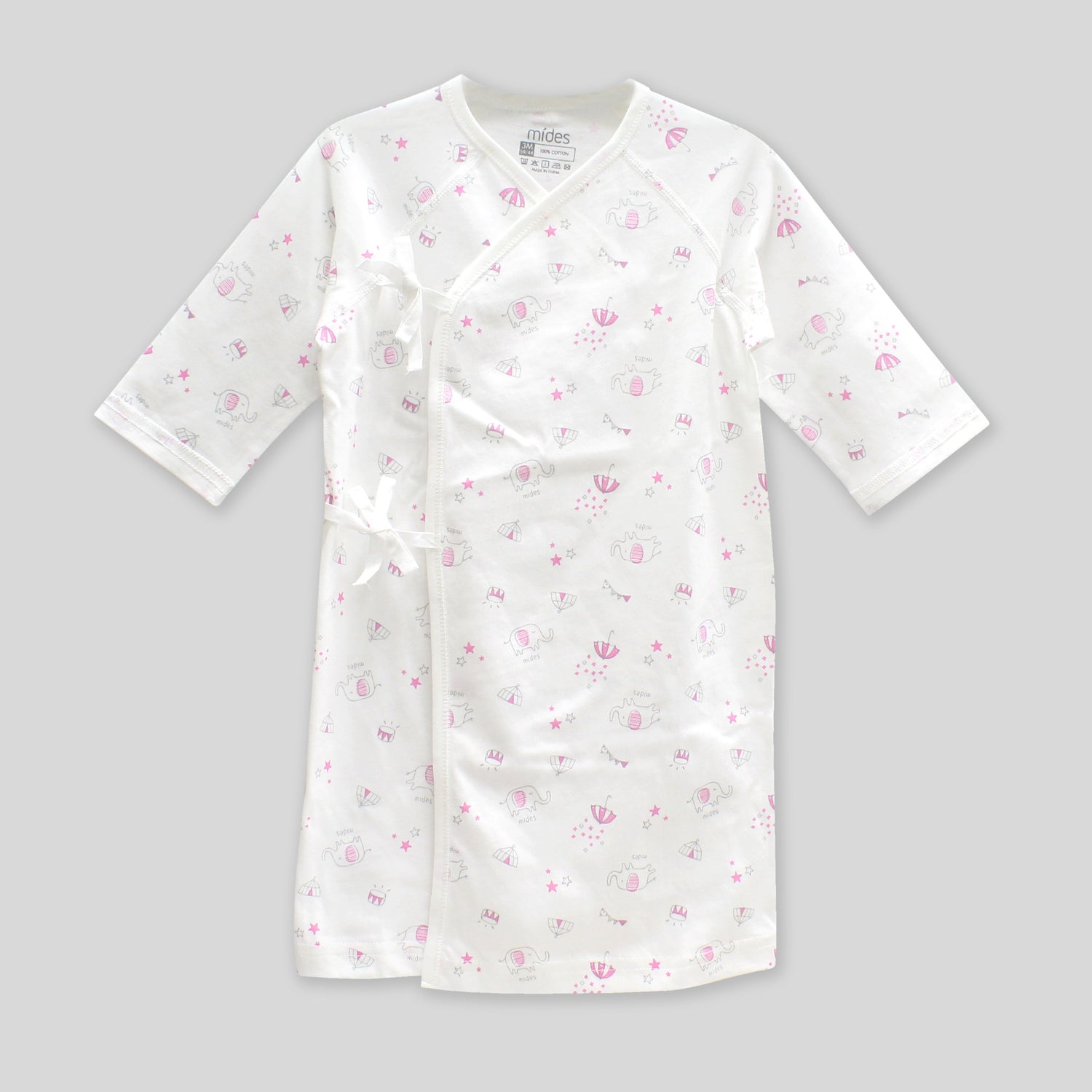一套9件(綁帶長袍x1件,綁帶短衫x1件,手套x1對,腳套x1對,包被x1件,紗巾x4條)